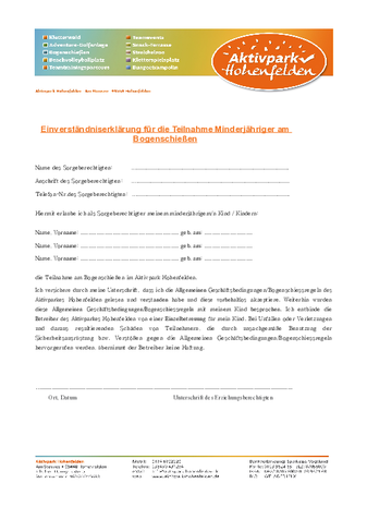- Beim Schießen durch Gäste mit eigenen mitgebrachten Bögen und Pfeilen haftet der Aktivpark Hohenfelden nicht bei Beschädigung des mitgebrachten Materials des Gastes.